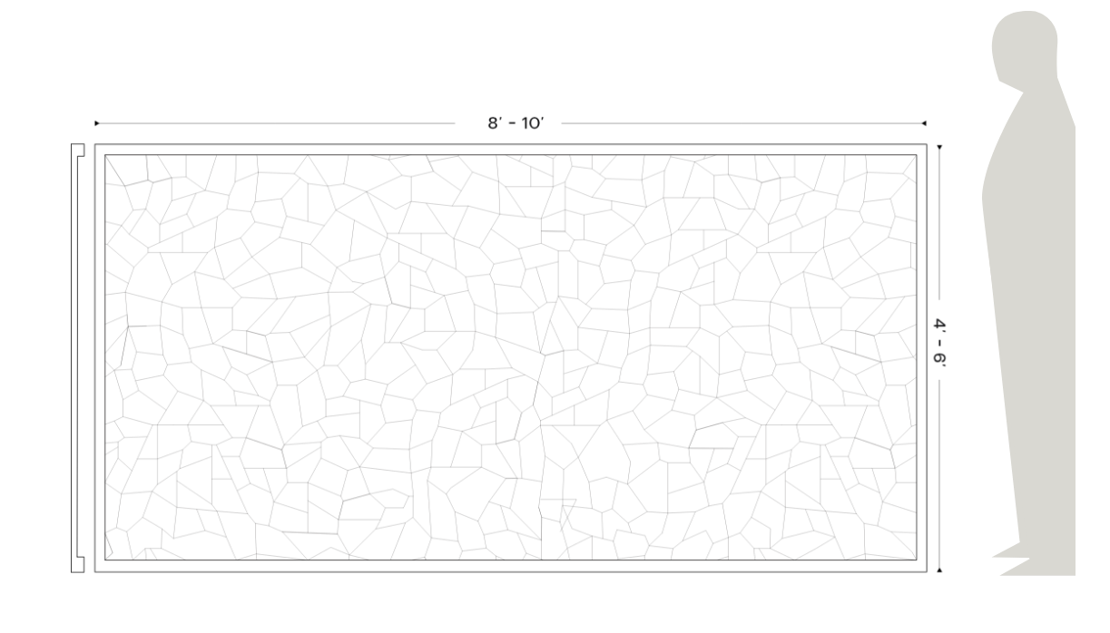 The size of the panels is dependent on the size of the stone block. Contact us to know more about the size availability. There is a minimum 1” border around each panel for handling and shipping purposes.