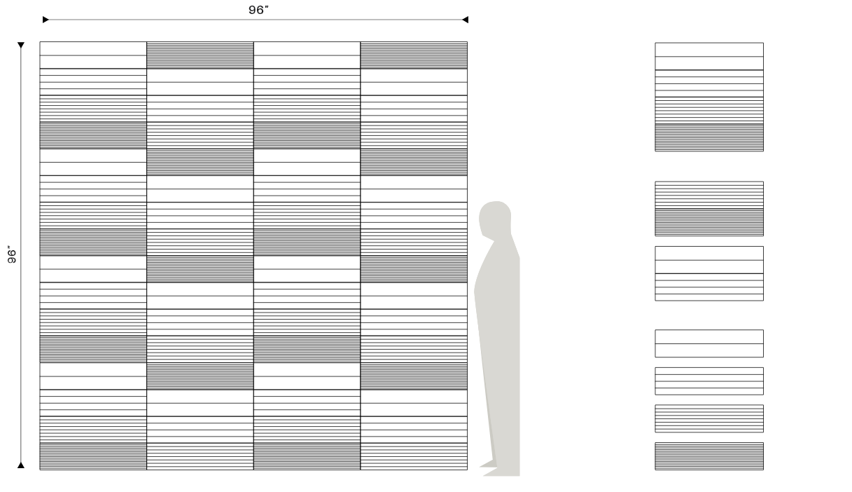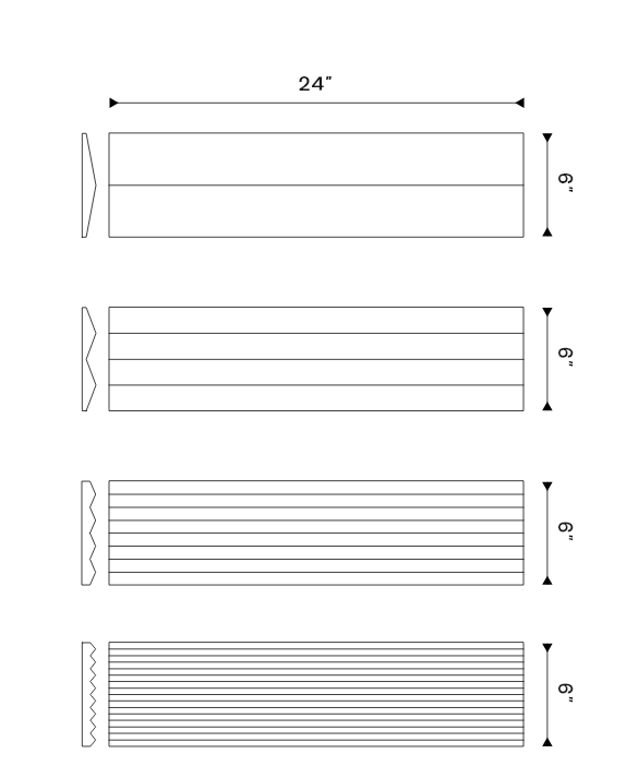 Strip arranges its grooves in a symphony of scales, from the delicate pianissimo of a half-inch rise to the full crescendo of two inches. These linear patterns, born from remnants, weave a narrative of renewal and rhythm.