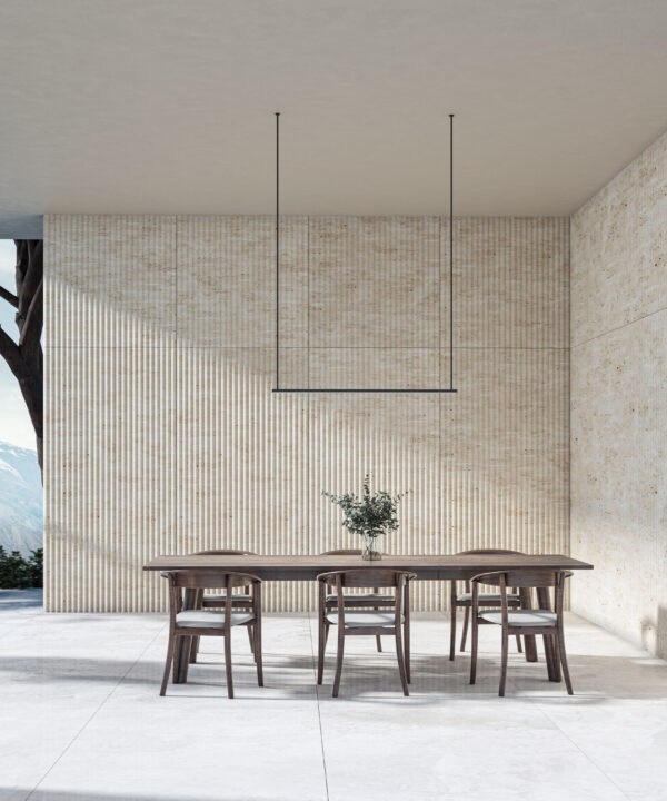 Emanating outward, the 1-inch convex wide flutes capture the essence of dimension, their rounded contours rolling like gentle waves against the shore, each rise and fall creating a mesmerizing play of light and shadow.