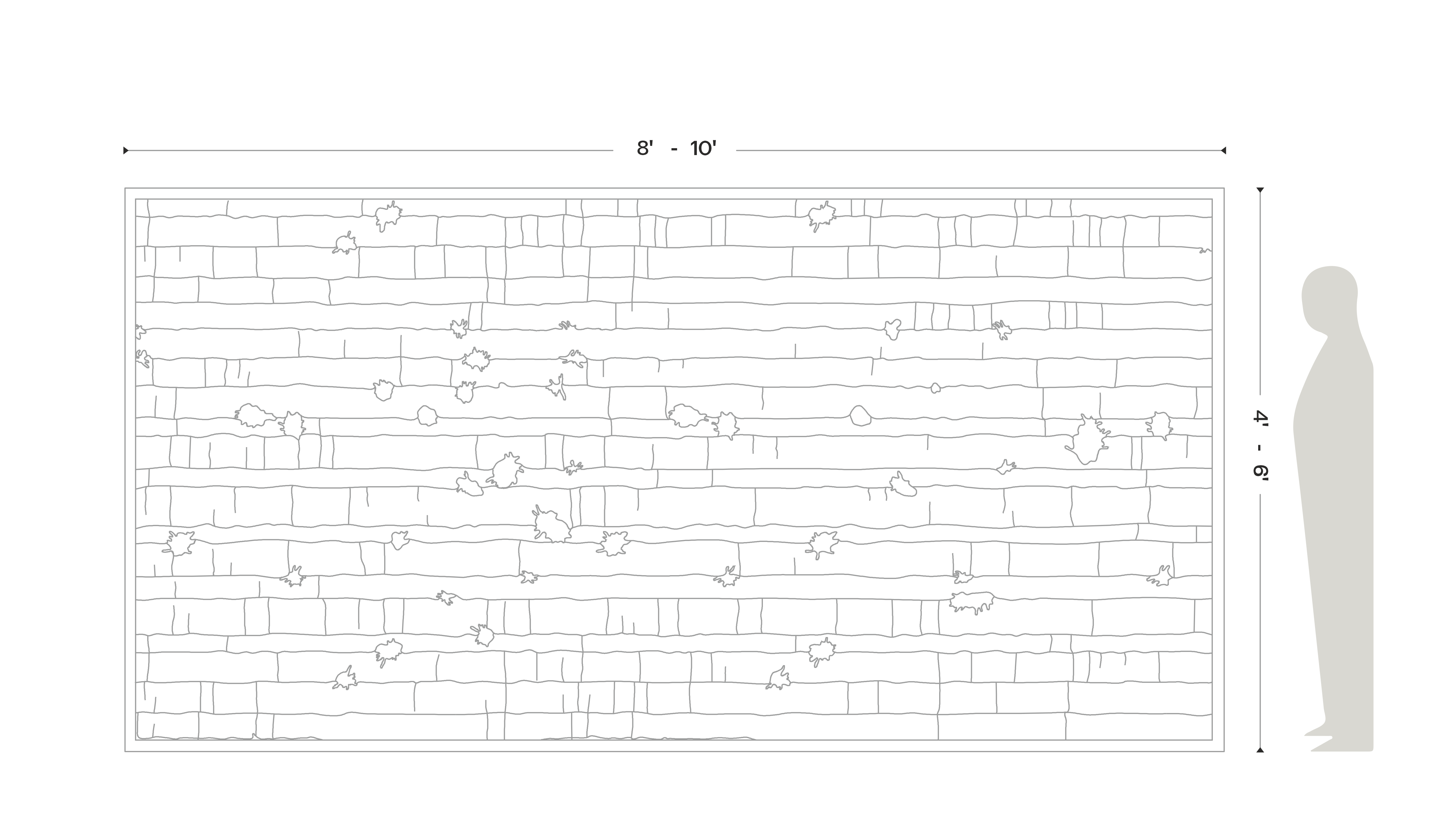 The size of the panels is dependent on the size of the stone block. Contact us to know more about the size availability. There is a minimum 1” border around each panel for handling and shipping purposes.