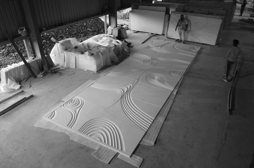 18 monumental pieces, each weighing over 500 lbs. Designed not with rigidity but rhythm, its joints are invisible, hidden within the flow itself —